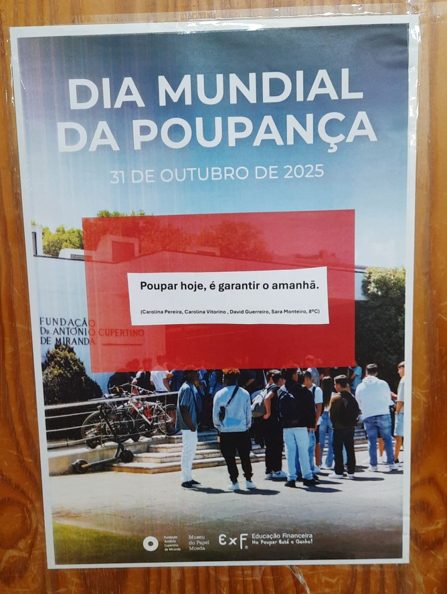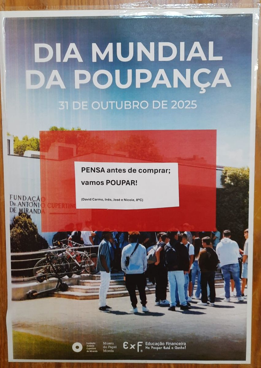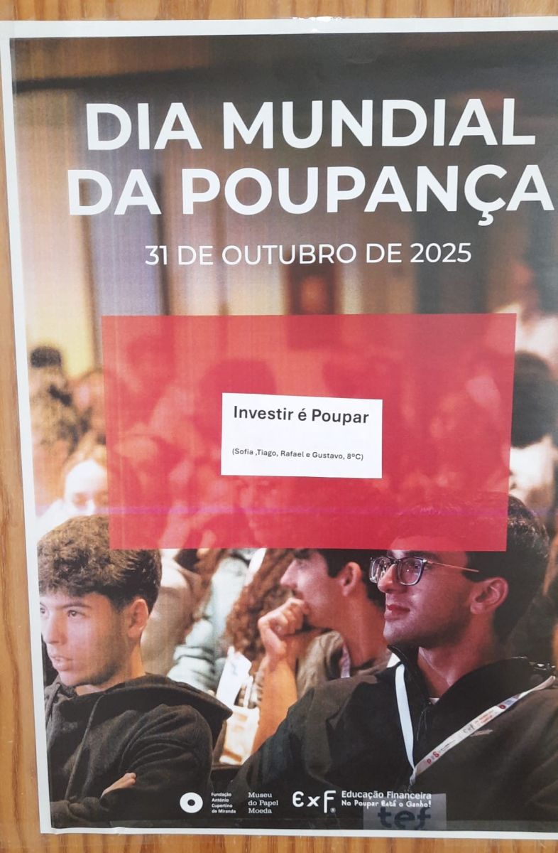Os alunos do 8ºC comemoraram o Dia Mundial da Poupança que ocorreu a 31 de outubro, na aula de Cidadania e Desenvolvimento cumprindo com um desafio do projeto "No Poupar Está o Ganho" em que a turma participa.