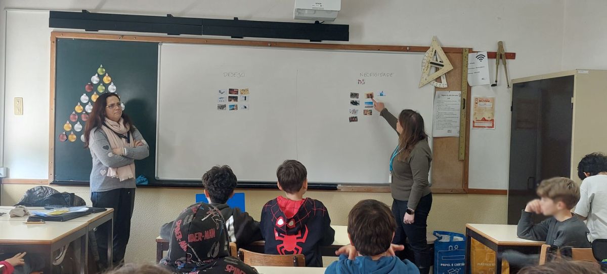 Foram alertados para a importância de fazer escolhas: Gastar ou poupar em diferentes situações; distinguir "Desejos" e "Necessidades"; priorizar gastos e a importância da poupança.